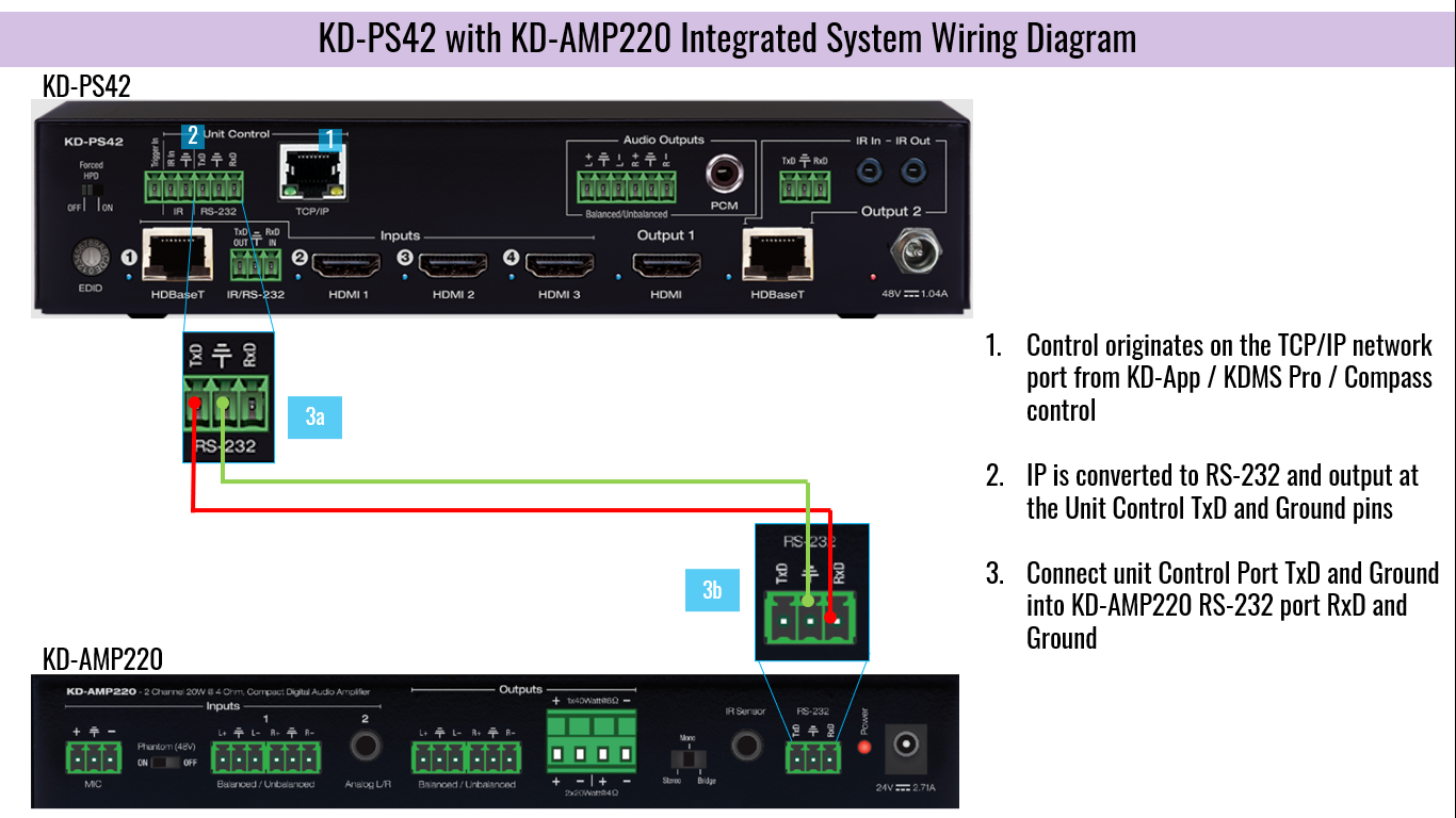 - KD-AMP220 Control Mode: Command forward to KD-Amp220 for an all-in-one user-friendly control UI of video switching, audio and speech enforcement