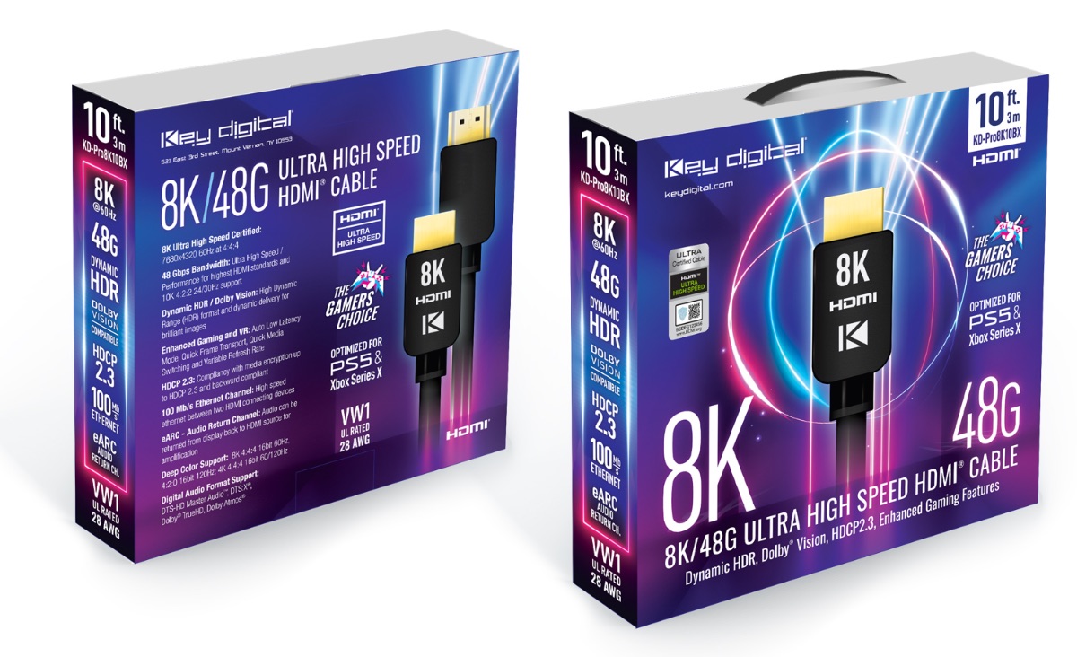10ft (3m) 8K/48G Ultra High Speed HDMI® Cable. Dynamic HDR, Dolby® Vision, HDCP2.3, Enhanced Gaming Features. Optimized for PS5 and XBox Series X.