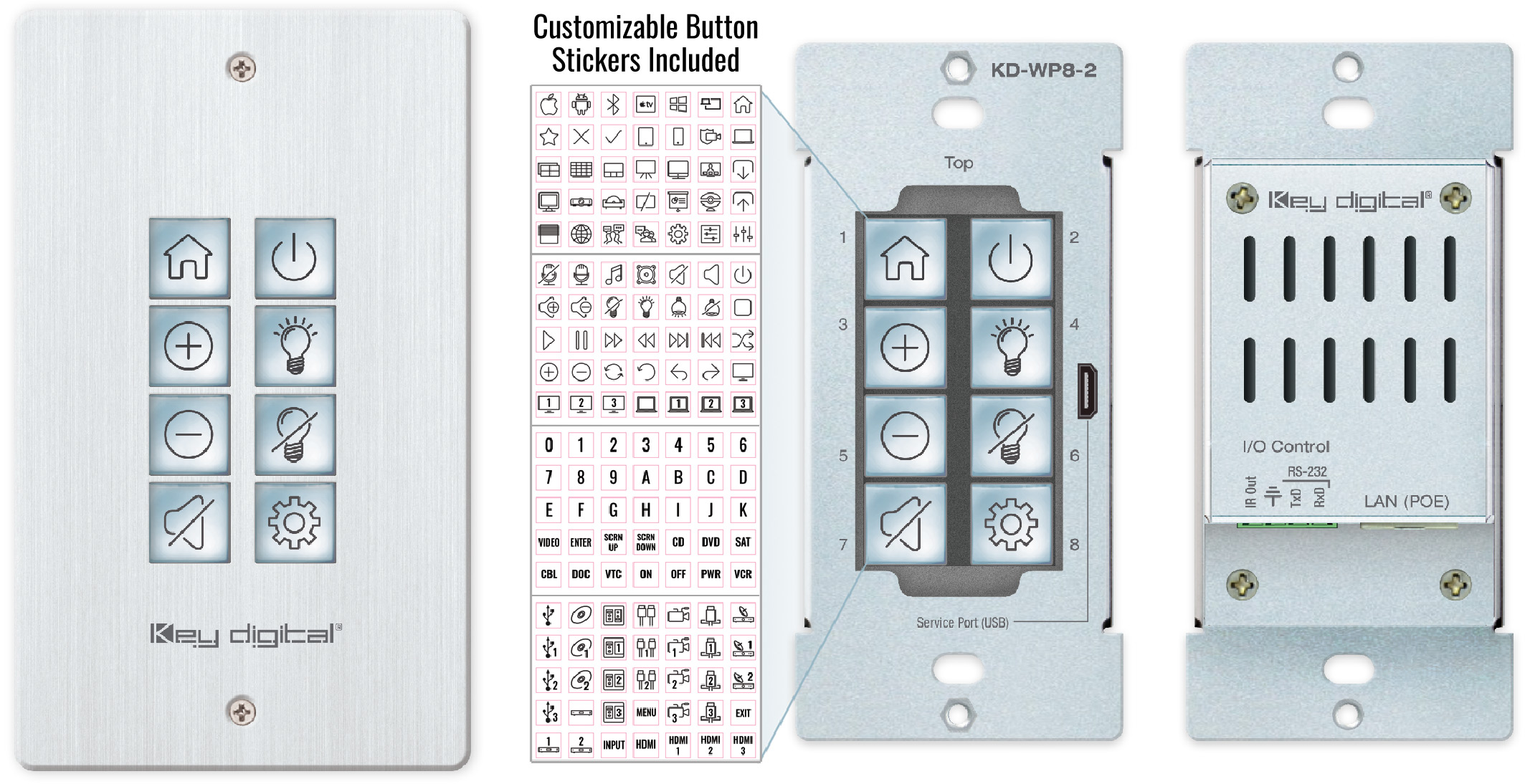 8 Button Programmable IP, RS-232, IR Control Keypad